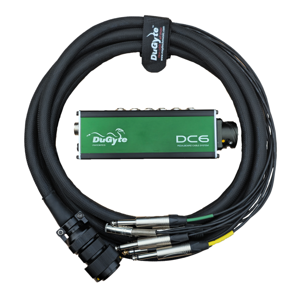 DuGyte Systems DC 6 Stereo Pedalboard Cable System delivers a fast and easy signal and power pedalboard connection solution using a just one cable loom. Using 100% pure copper conductors, the DuGyte DC 6 will deliver a complete noiseless performance, eliminate any hum or noise in your pedalboard – improving your tone and sound output.