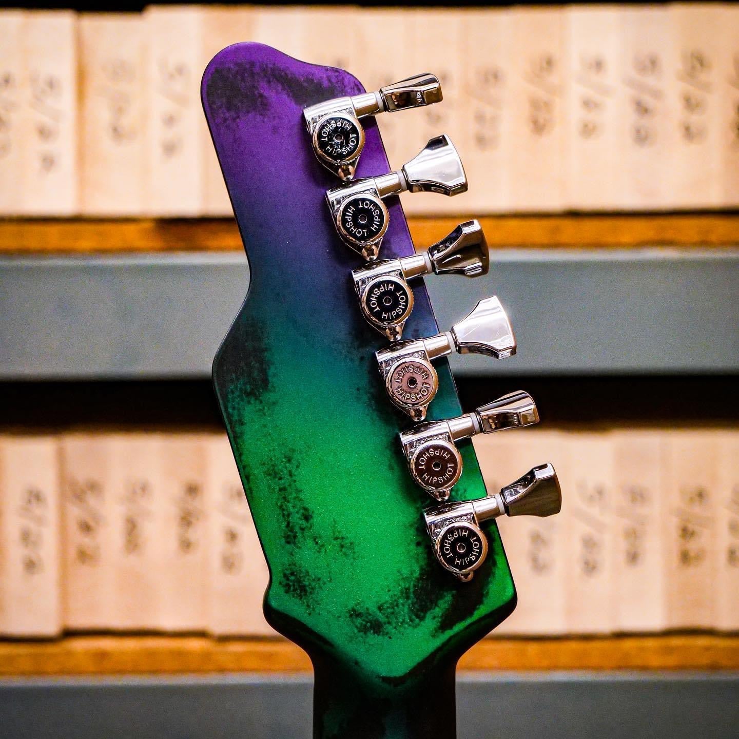 Quartersawn Maple, ultra-thin profile (.825” - .950”), compound Ebony fretboard (10”-12” radius) Inlays: Turquoise dots with Luminlay side dots (yes, they glow green 👽)