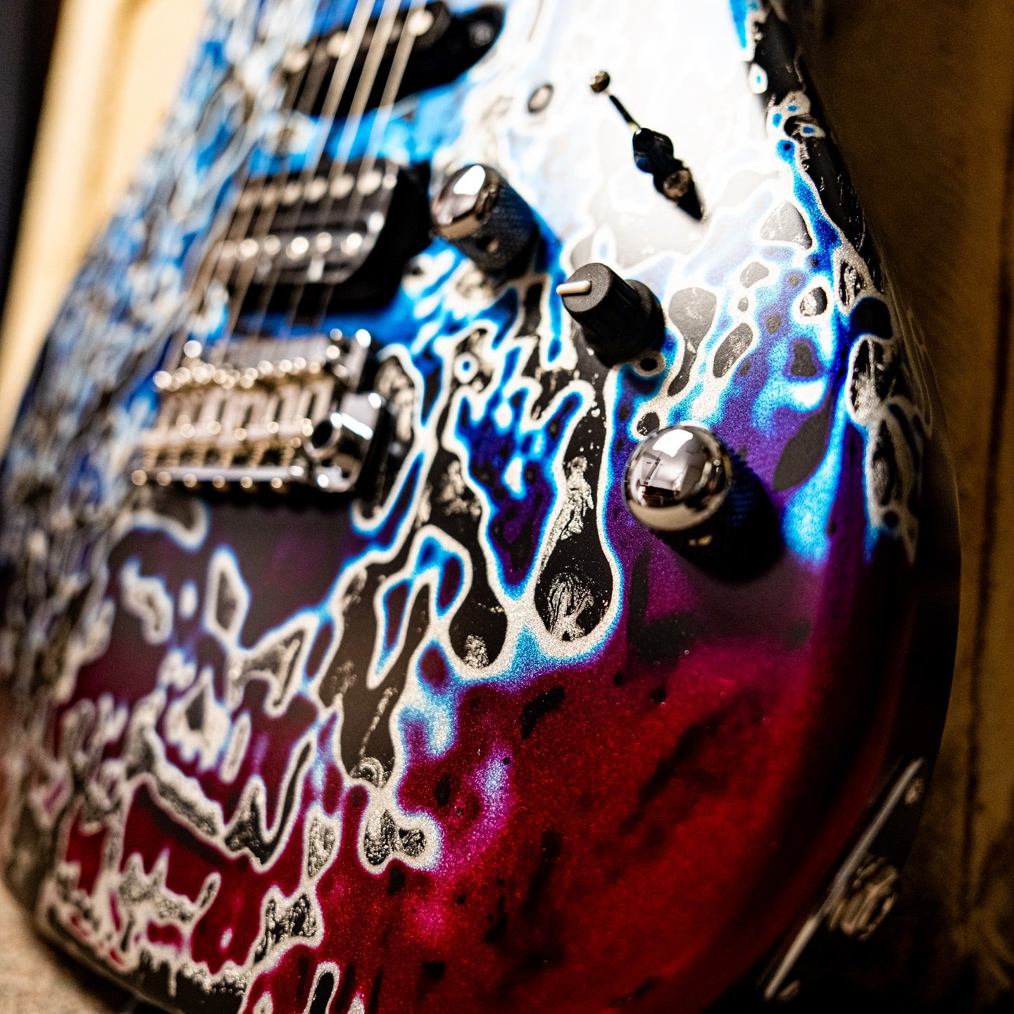 The rear rout design keeps the body lines sleek, and the Fire & Ice Shmear finish ensures no two guitars look alike. For players, it’s a highly versatile workhorse; for collectors, it’s a visually striking example of Tyler’s artistry.