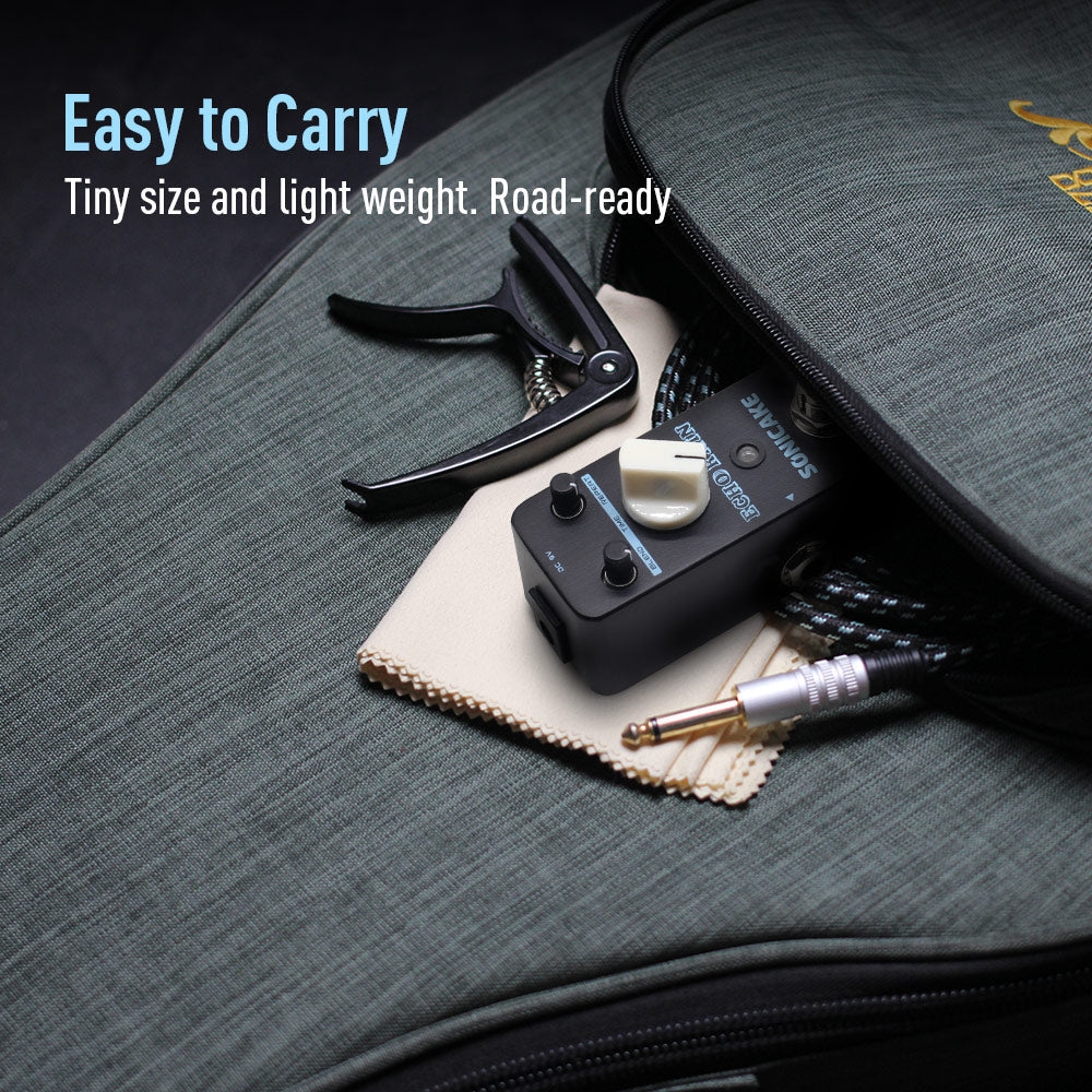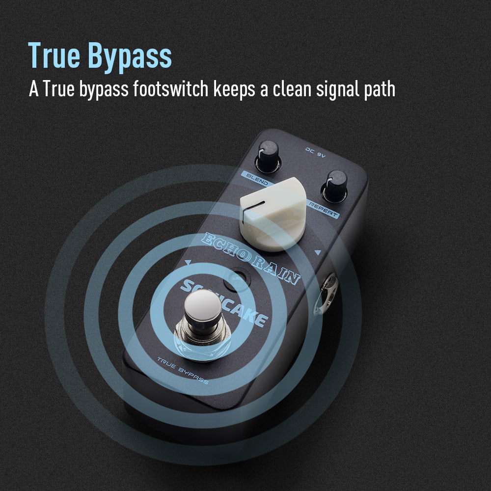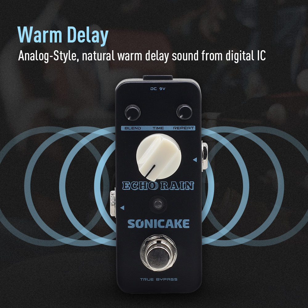 Experience warm, natural delay effects with the SONICAKE Echo Rain. This dual-mode hybrid delay pedal combines digital precision with an analog-style sound, perfect for enhancing your guitar tone.