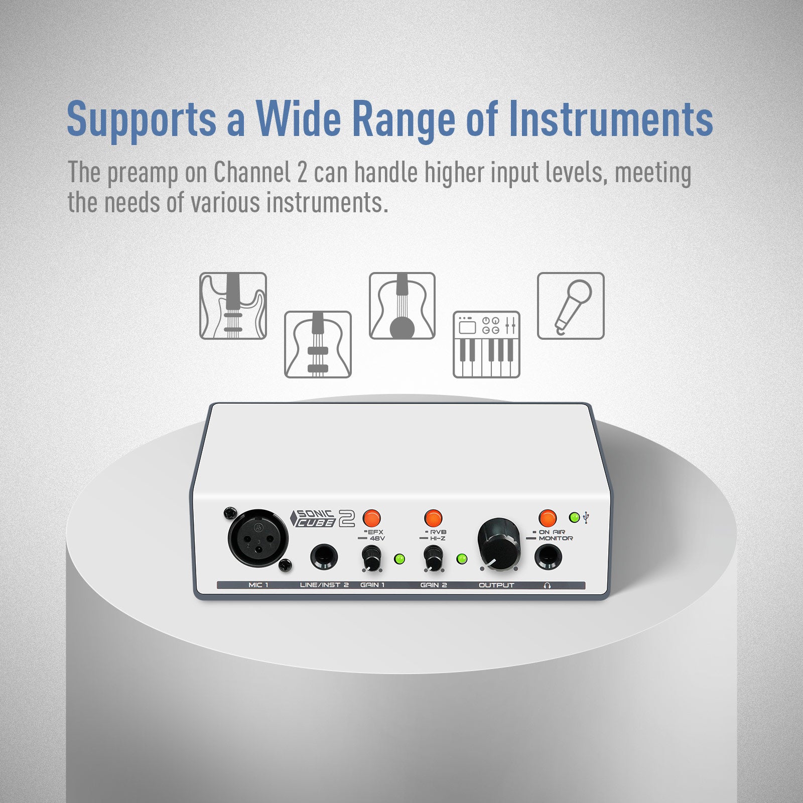 Ok, We know Theres a million different interfaces out there at this price point, but the Sonicake Sonic Cube II really separates itself from other budget audio interfaces in several key ways. While most entry-level interfaces stick to basic input/output and clean gain, the Sonic Cube II integrates guitar-centric features, streaming-ready functions, and onboard DSP processing — all in a compact, affordable package.
