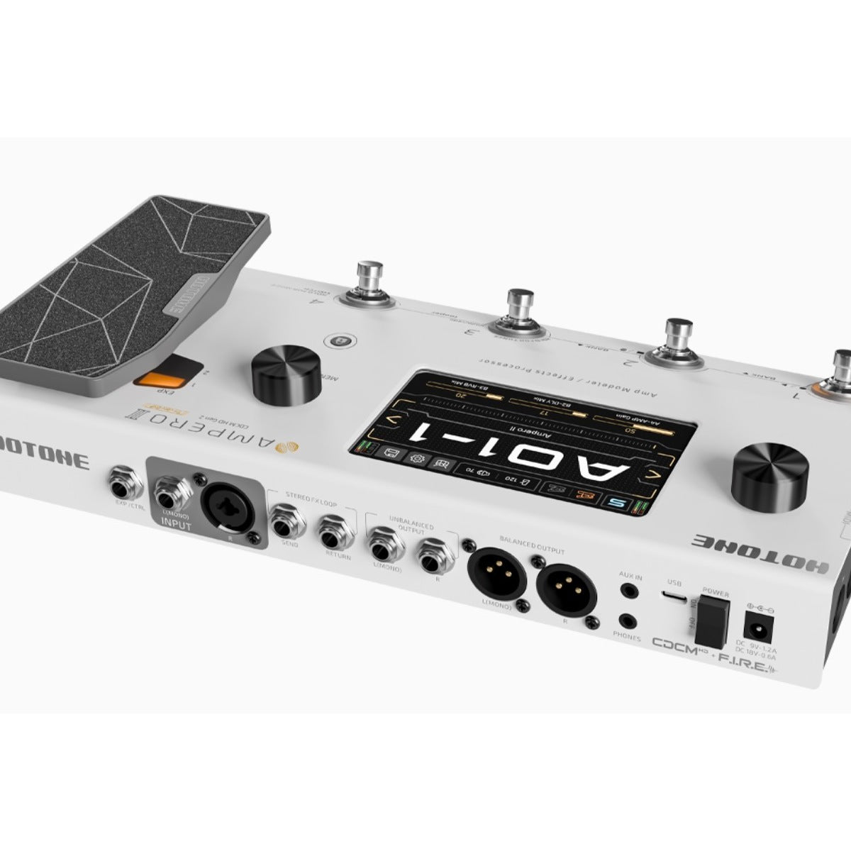 The Hotone Ampero II Multi FX Pedal is a powerful, portable multi-effects processor built for guitarists, vocalists, and modern musicians who demand premium tone, intuitive control, and professional flexibility in one compact unit. Powered by Hotone’s advanced triple-core digital processing platform, it delivers next-generation amp and effects modelling alongside innovative Tone Catch technology for capturing your favourite gear. A smooth 5-inch colour touchscreen, dual signal chains, and seamless scene switching provide intuitive control on stage or in the studio, while extensive connectivity, a built-in looper, drum machine, and 8-in/8-out USB audio interface make the Ampero II an all-in-one solution for live performance, recording, practice, and content creation.