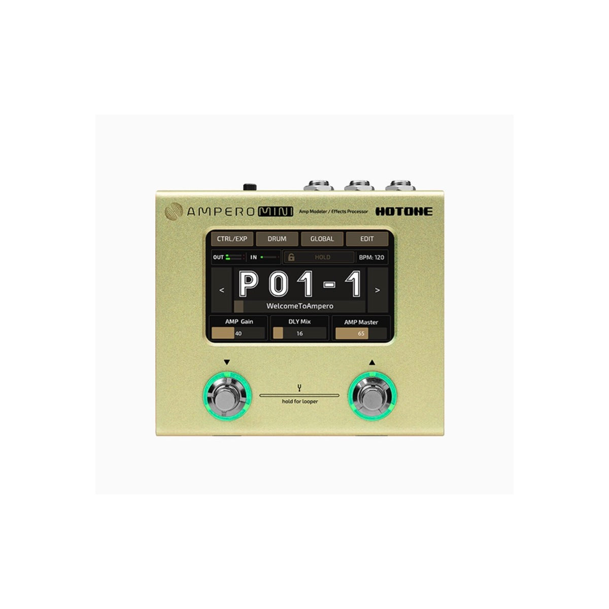 Ampero Mini is the smallest guy in our Ampero family so far, offering you uncompromised Ampero sound in an ultra compact aluminum case. It has the essentials of stunning Ampero effects armory with 3rd party IR support. Onboard essential I/O jacks are more than enough for daily use, the touch screen and intuitive UI ensures smooth, straight-forward experience on a minimalized chassis. Ampero Mini will offer you excellent performance on the money, especially for players who want to experience Ampero tone, rookies on a budget, session musicians who need both ultra-compact size and pro tone, even experienced amp modeler players.